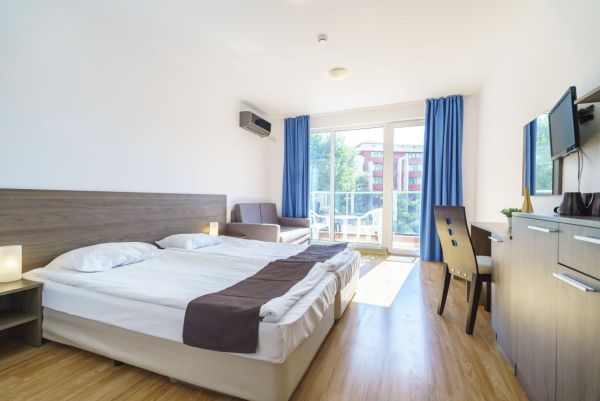 Minden szobához terasz vagy erkély tartozik, teljesen felszerelt fürdőszoba, műholdas TV, légkondicionáló, mini hűtőszekrény.