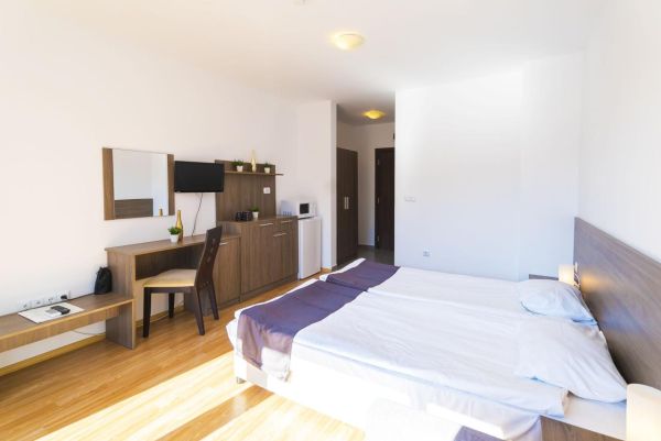 Stúdió – kb. 22 m² (max. 2+1/3+0), tengerre néző, 2 egyszemélyes ágy és kihúzható kanapé