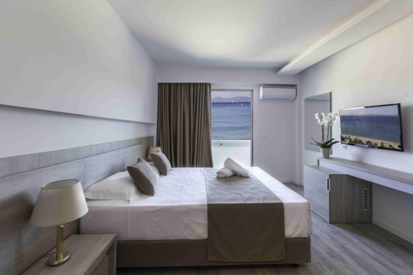 Kétágyas szobái 25 m2-esek, a szálloda területére és környezetére, hegyre-, oldalról tengerre- vagy közvetlenül tengerre néző kilátással foglalhatóak.