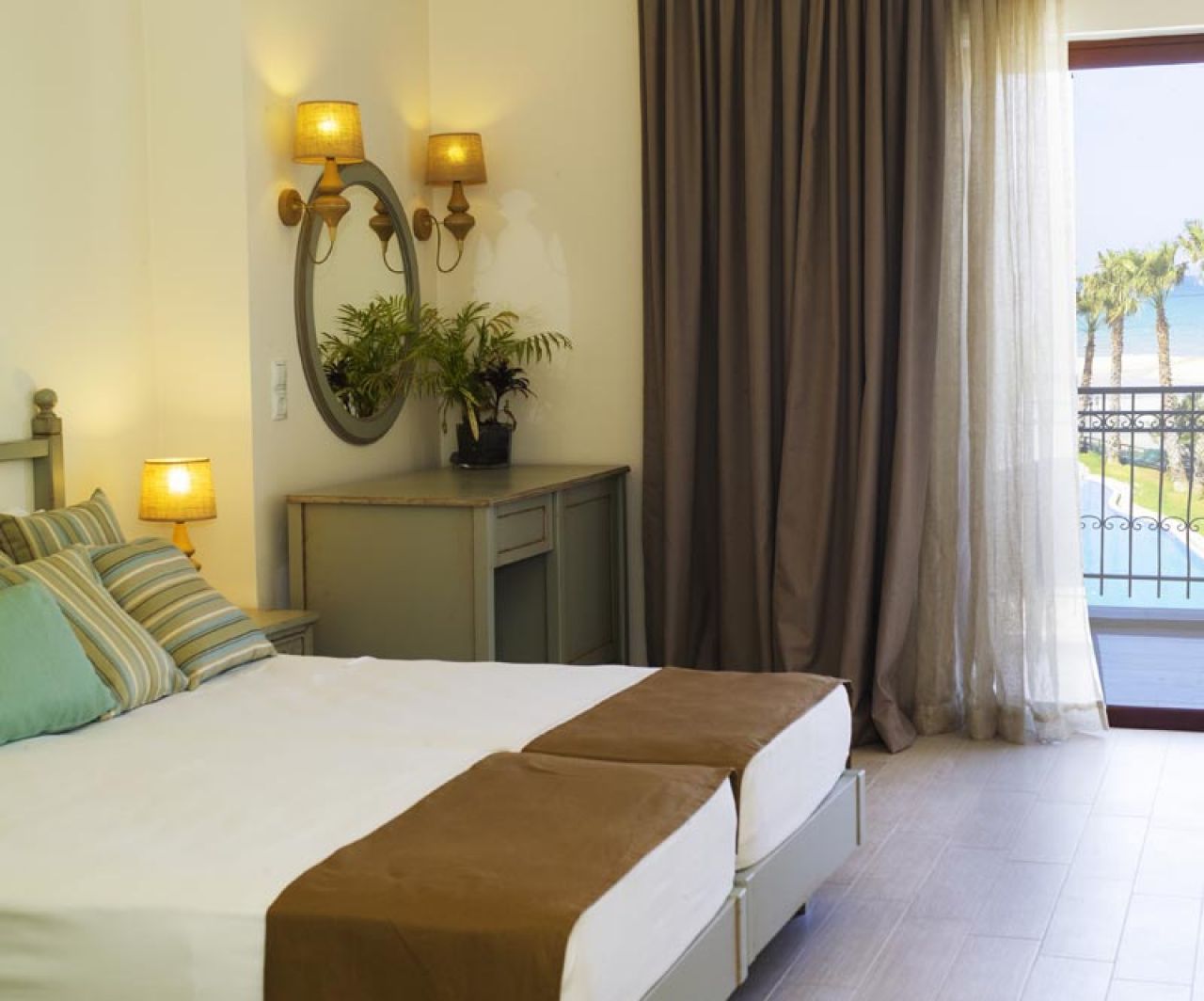Az Almyrida Beachben kétágyas szobák, családi szobák és junior lakosztályok találhatók, melyek mindegyike légkondicionálóval, központi fűtéssel, televízióval, hajszárítóval, telefonnal, széffel és hűtőszekrénnyel rendelkezik.