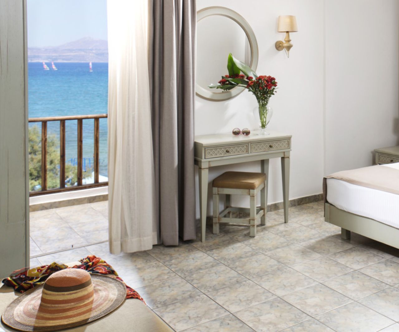 Minden szobához erkély tartozik, közvetlen kilátással a tengerre.