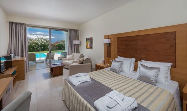 Szobáinak mindegyike központilag szabályozott légkondicionálóval, ingyenes WIFI-vel és széffel, minibárral, tea- és kávékészítési lehetőséggel, szatellit Tv-vel, telefonnal, hajszárítóval, fürdőszoba/WC-vel és erkéllyel vagy terasszal felszerelt. A Double szobák kertre vagy medencére néző kilátással foglalhatóak. A Junior Suite Sharing Pool és Deluxe Junior Suite Sharing Pool szobatípusok közvetlen medencekapcsolattal rendelkeznek, míg a Junior Suite Private Pool szobák privát medencével felszereltek. Speciálisan felszerelt szoba mozgássérült vendégek számára lekérésre foglalható.