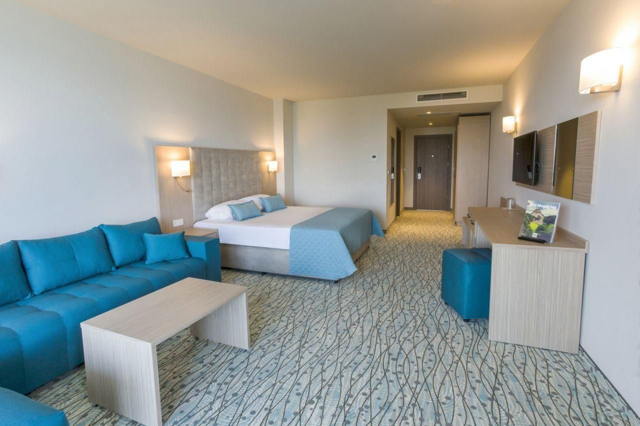központi légkondicionálás (meleg/hideg), 40” síkképernyős SAT TV, telefon, szőnyegpadló, minibár/hűtő, fürdőszoba zuhannyal, hajszárító, széf (ingyenes), Wi-Fi (ingyenes), erkély vagy terasz.