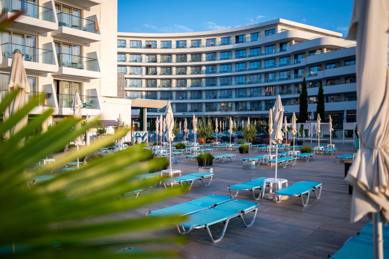 ingyenes napozóágyak, napernyők és törölközők a medencéknél és a strandon