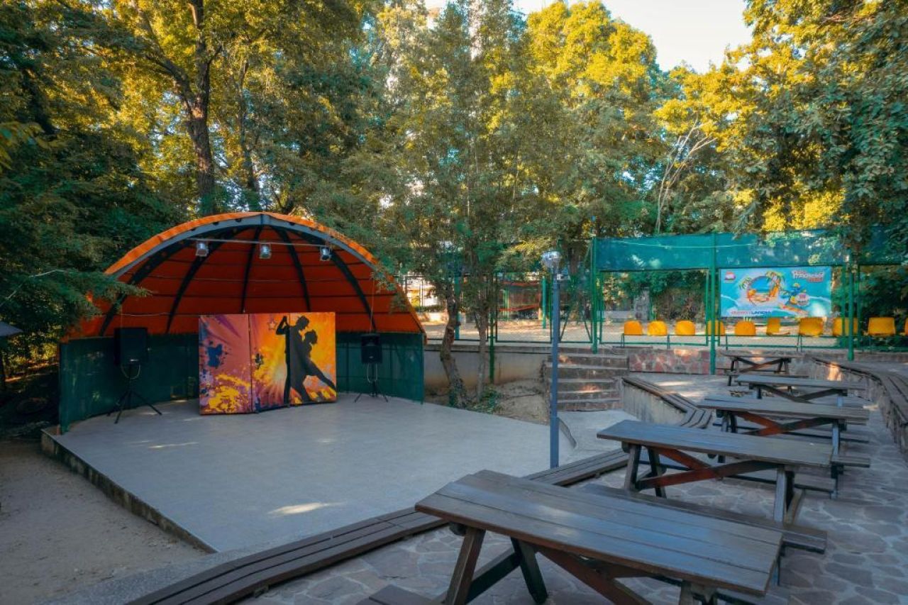 Kültéri medence, gyermekmedence, beltéri medence, játszótér, fitneszterem, aerobik, asztalitenisz, röplabda, miniklub, minidiszkó, szauna és masszázs áll rendelkezés. Bizonyos szolgáltatások felár ellenében érhetőek el. A közelben található egy diszkó, amely a főszezonban szórakozási lehetőséget kínál.