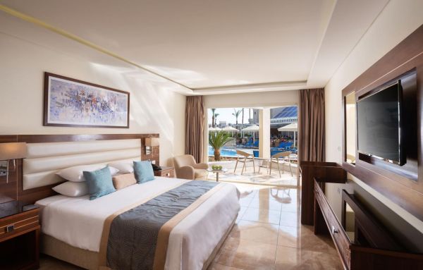 A Vörös-tengerre vagy a parkosított kertre néző, tágas, légkondicionált szobák műholdas TV-vel és minibárral rendelkeznek. Minden szobához erkély vagy terasz, széf minibár, saját fürdőszoba tartozik piperecikkekkel és hajszárítóval.