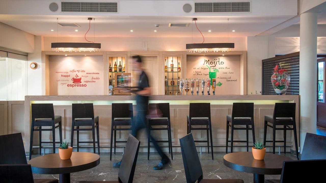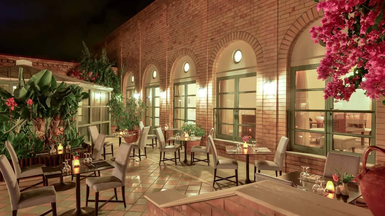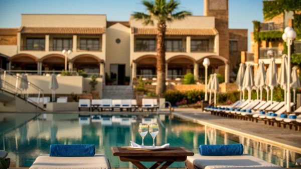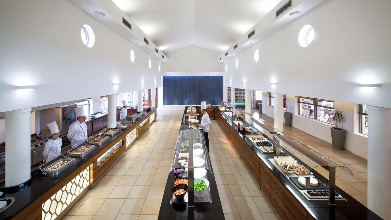 All inclusive ellátással foglalható, mely tartalmazza a büféjellegű reggelit, ebédet és vacsorát. Napközben snackételek, tea, kávé, sütemény, fagylalt kérhető. Helyi-, illetve bizonyos import italok 10:00-23:00 óráig fogyaszthatóak (üdítő, víz, forró italok, csapolt sör, bor pohárban, likőrök, brandy, röviditalok, koktélok). Főétterme mellett két a’la carte étterem (mediterrán és görög ételekkel, előzetes foglalás szükséges), négy bár (lobbi-, bor-, medence melletti- és tengerparti bár), valamit vegetáriánus-, gluténmentes- és gyerekmenü várja a vendégeket. Éttermeiben megfelelő öltözet viselendő.