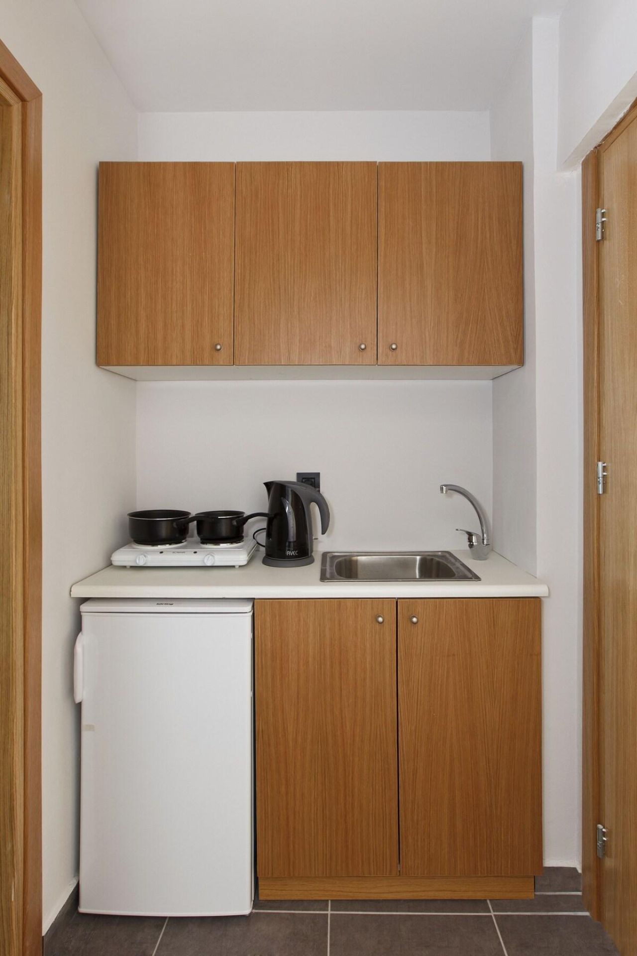 Studio: a maximum 3 fő részére foglalható szoba konyhával, konyhai eszközökkel és 2 főzőlappal felszerelt.