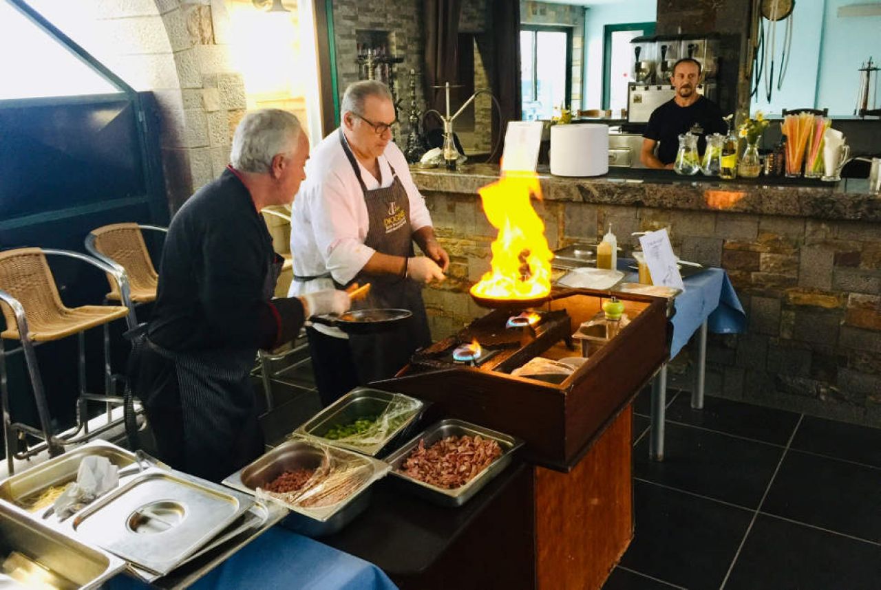 A szálloda kizárólag all inclusive ellátással foglalható. A szálloda éttermében különféle krétai és mediterrán ételeket szolgálnak fel. A medence melletti bárban rágcsálnivalók, kávék és italok fogyaszthatók. A séf görög esteket és főzőshow-kat szervez.