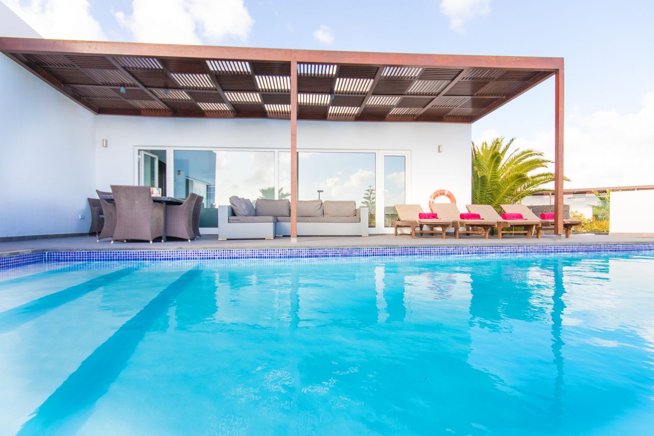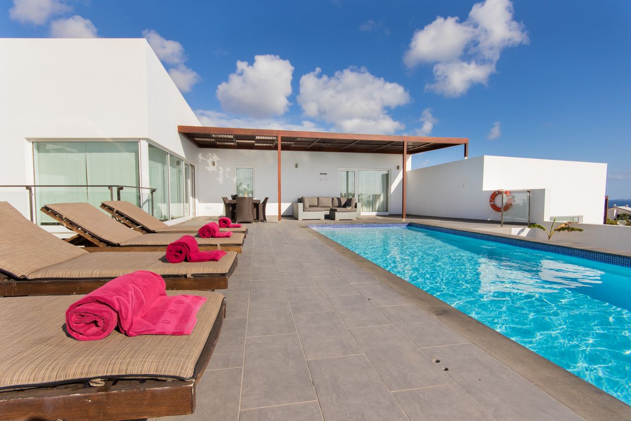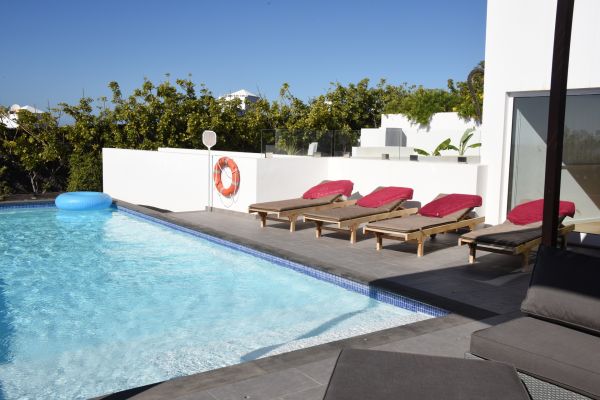 A Montaña Roja-Playa Blancában található Ereza Hoopoe Villas villákat kínál privát medencével. A 2 szintes, 4 hálószobás villák légkondicionálóval, valamint kertjükben napozóterasszal és grillezővel várják a vendégeket. A modern konyhában sütő, mosogatógép és mosógép, valamint mikrohullámú sütő, kávéfőző és vízforraló található. A világos nappaliban étkezőasztal, több kanapé, valamint síkképernyős TV és DVD-lejátszó várja a látogatókat. A 4 hálószobás villa 3 hálószobájában kétszemélyes ágy, 4. hálójában pedig 2 fős emeletes ágy található. Továbbá 3 fürdőszoba is gondoskodik a kényelemről. A 3 hálószobás villa minden szobája kétszemélyes ággyal rendelkezik. A helyszínen autó és kerékpár bérlésére is lehetőség nyílik. Lanzarote repülőtere 30 perces autóútra fekszik.