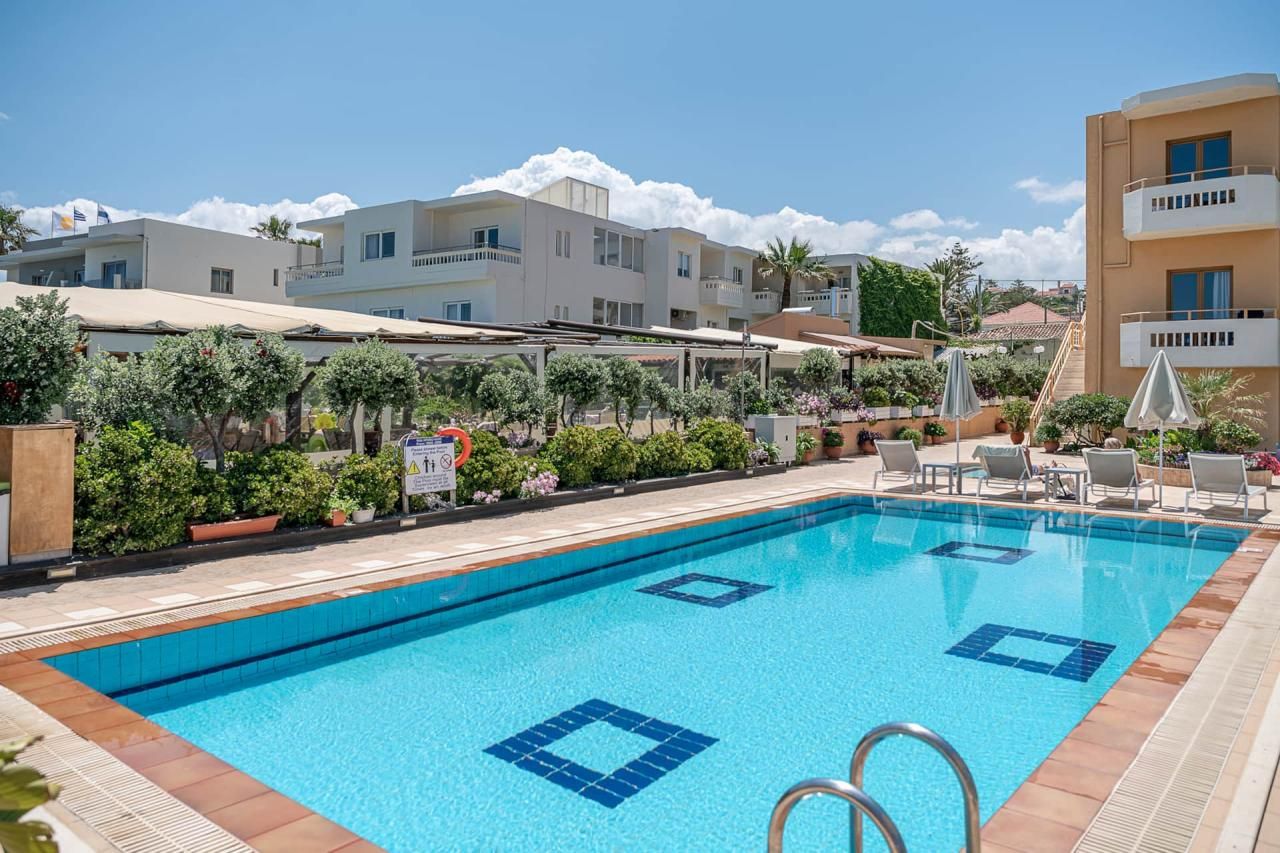 A vendégek pihenhetnek a snackbárban vagy a medence mellett található napozóágyakon. Alternatívaként meglátogathatják Haniá városát és a Régészeti Múzeumot.
