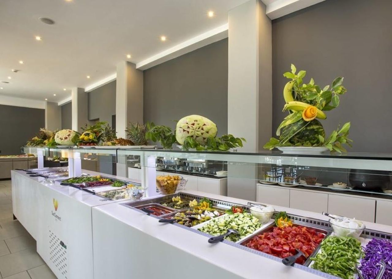 All inclusive ellátással foglalható, mely tartalmazza a büféjellegű reggelit, ebédet, vacsorát, valamint a helyi alkoholos- és alkoholmentes italokat. Napközben snackételeket, szendvicset, gyümölcsöt, süteményeket és fagylaltot kínálnak. Előzetes lekérésre a szálloda speciális menüt biztosít.