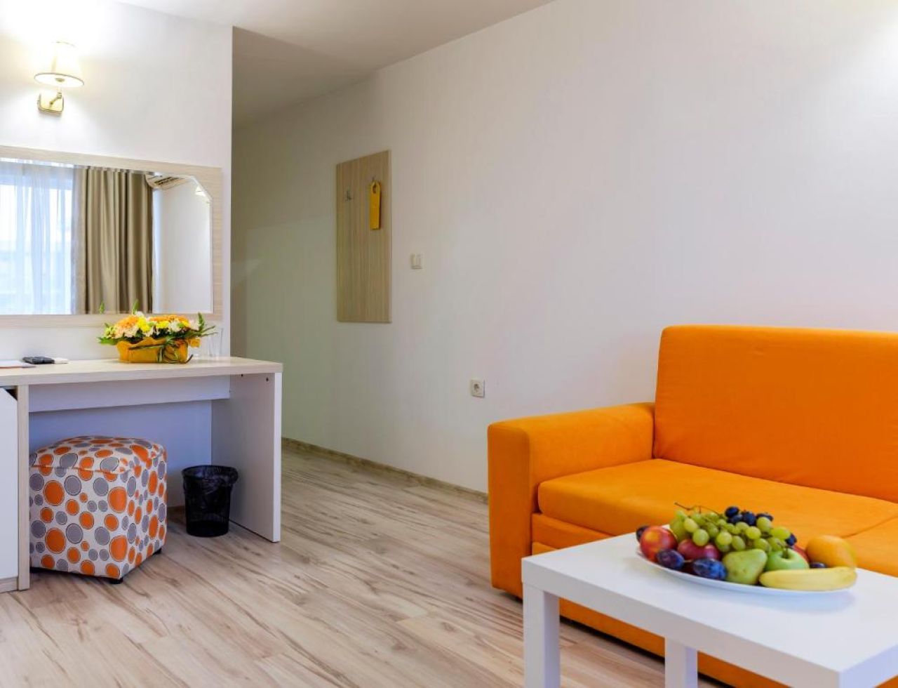 Egy hálószobás apartman (lakosztály) (min. 2+1/max. 2+3/3+2/3+2+1 inf.), két szoba – hálószoba franciaággyal vagy két külön ággyal, kihúzható kétszemélyes kanapé a nappaliban. Összekötő ajtó a hálószoba és a nappali között.