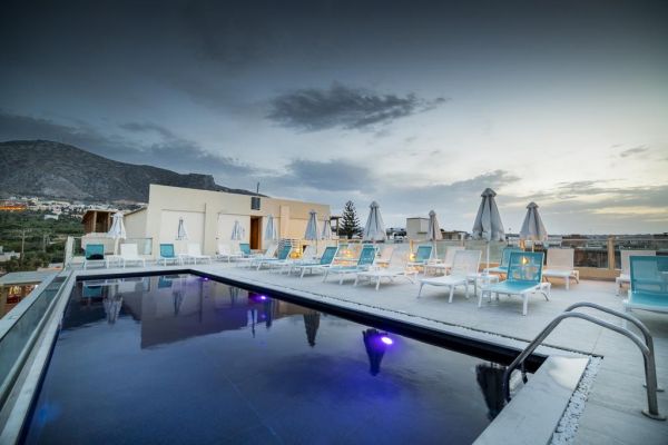 A szálloda Hersonissosban található, mindössze pár lépésre a homokos tengerparttól. A heraklioni repülőtértől kb. 25 km-re, Hersonissos városközpontjától kb. 4 km-re fekszik. A közelben számos étterem, bár, taverna található.