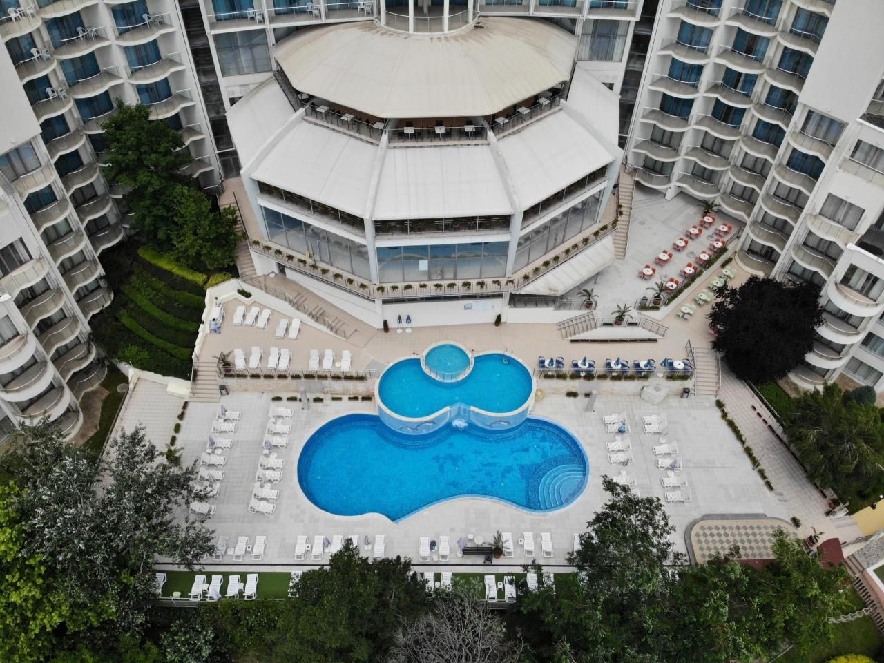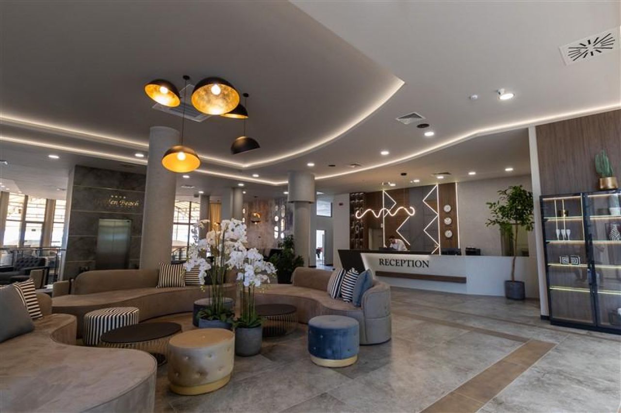 Kb. 200 méterre a szálloda saját, nyilvános, homokos strandjától található a 4 csillagos Golden Beach Park Hotel. A legközelebbi bárok és éttermek körülbelül 200 m-re helyezkednek el. Az üdülőközpont központja mintegy 500 m-re található. Szupermarket és egyéb üzletek szintén kb. 200 m távolságra érhetők el. A strand vízimentő által felügyelt. Napernyők és matracok a strandon felár ellenében vehetők igénybe.