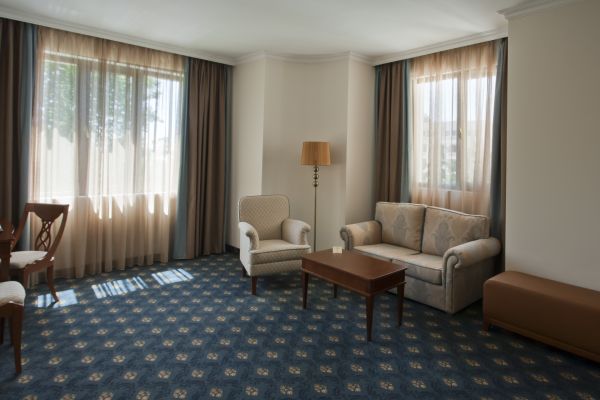 Deluxe szobák: 40-45 m2, Queen size ágy / 2 m x 2 m/; ülősarok íróasztallal; minibár; széf; vízforraló, tea és instant kávé; vasaló vasalódeszkával; légkondicionáló; analóg telefon; szélesvásznú LCD TV digitális TV-kábellel; nagy sebességű optikai internet és vezeték nélküli internet; fürdőszoba káddal és zuhanykabinnal, hajszárító; erkély ülősarokkal;