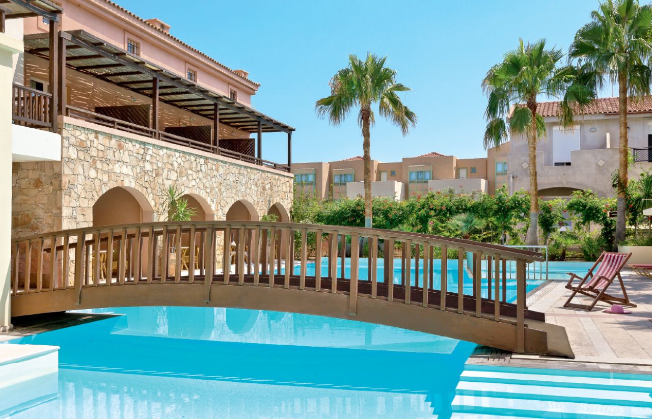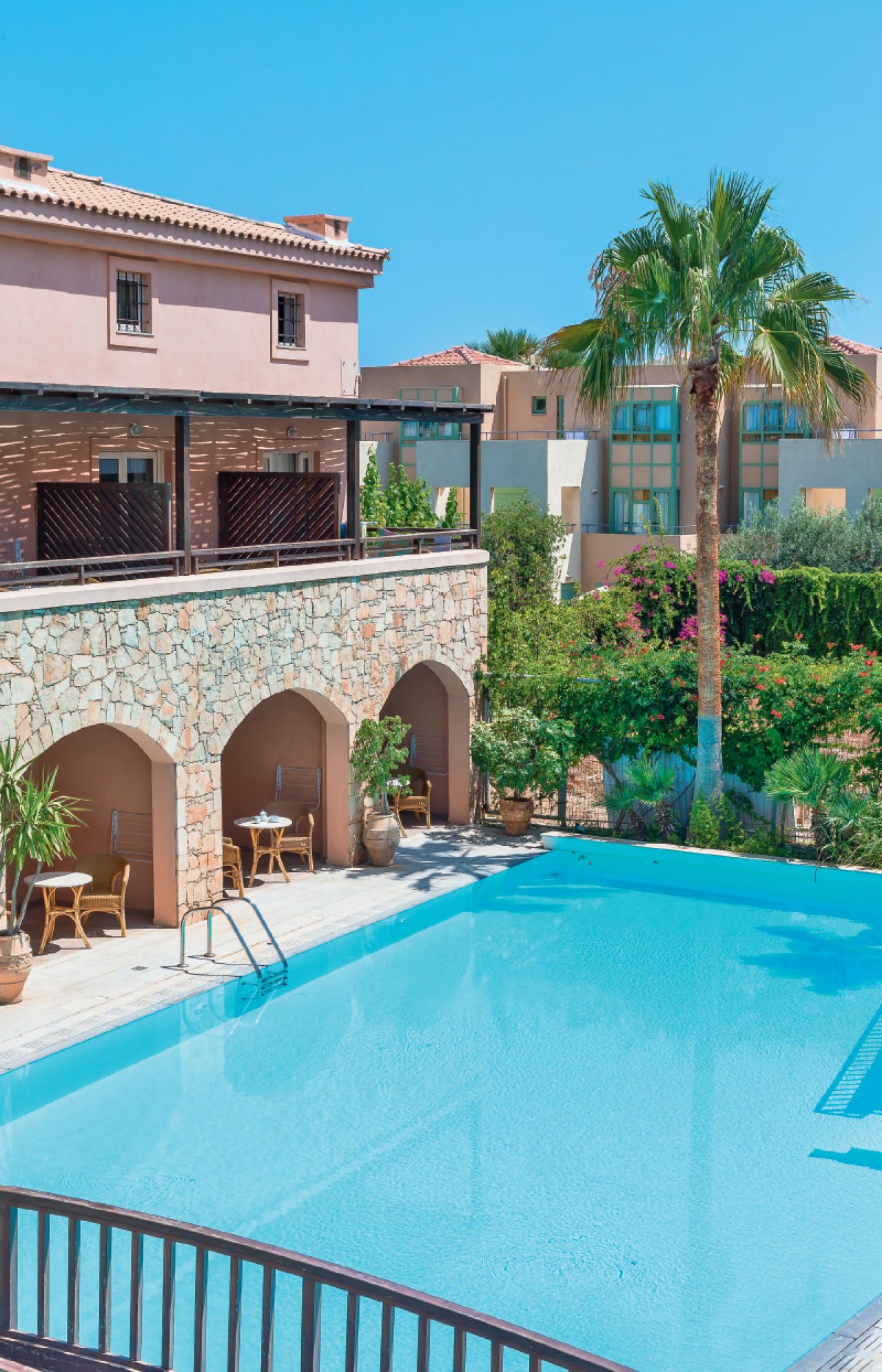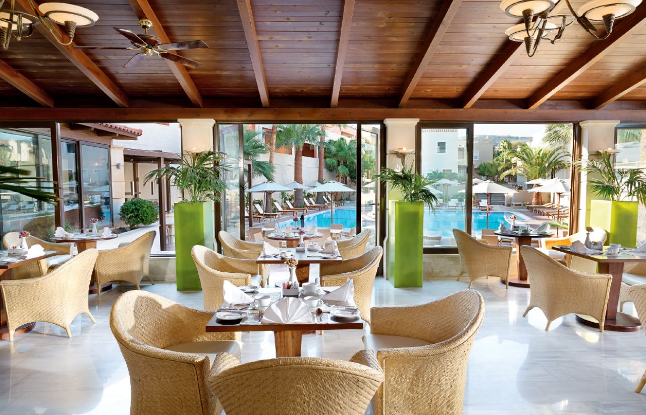 A vendégek hagyományos krétai és más mediterrán ételeket fogyaszthatnak ebédre vagy vacsorára, míg italokat és könnyű ételeket a snackbárban is elfogyaszthatnak. Számos étterem és üzlet található a szálláshelytől sétatávolságra.