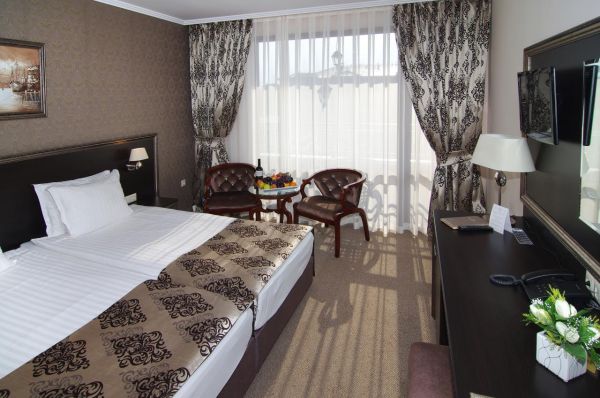 DBL economy erkély nélkül = DBL standard szoba (erkély nélkül), (max. 2+1/3+0), két normál ágy és 1 kihúzható fotel.