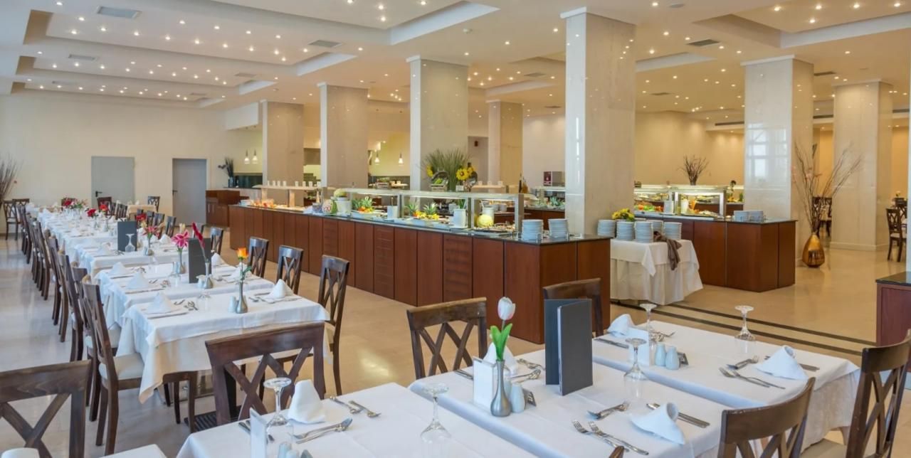 Reggelivel vagy félpanziós ellátással foglalható, utóbbi tartalmazza a büféjellegű reggelit és vacsorát, italok nélkül. A szálloda medence melletti éttermében és bárjában a vendégek térítés ellenében fogyaszthatnak ebédet, alkoholos- és alkoholmentes italokat.
