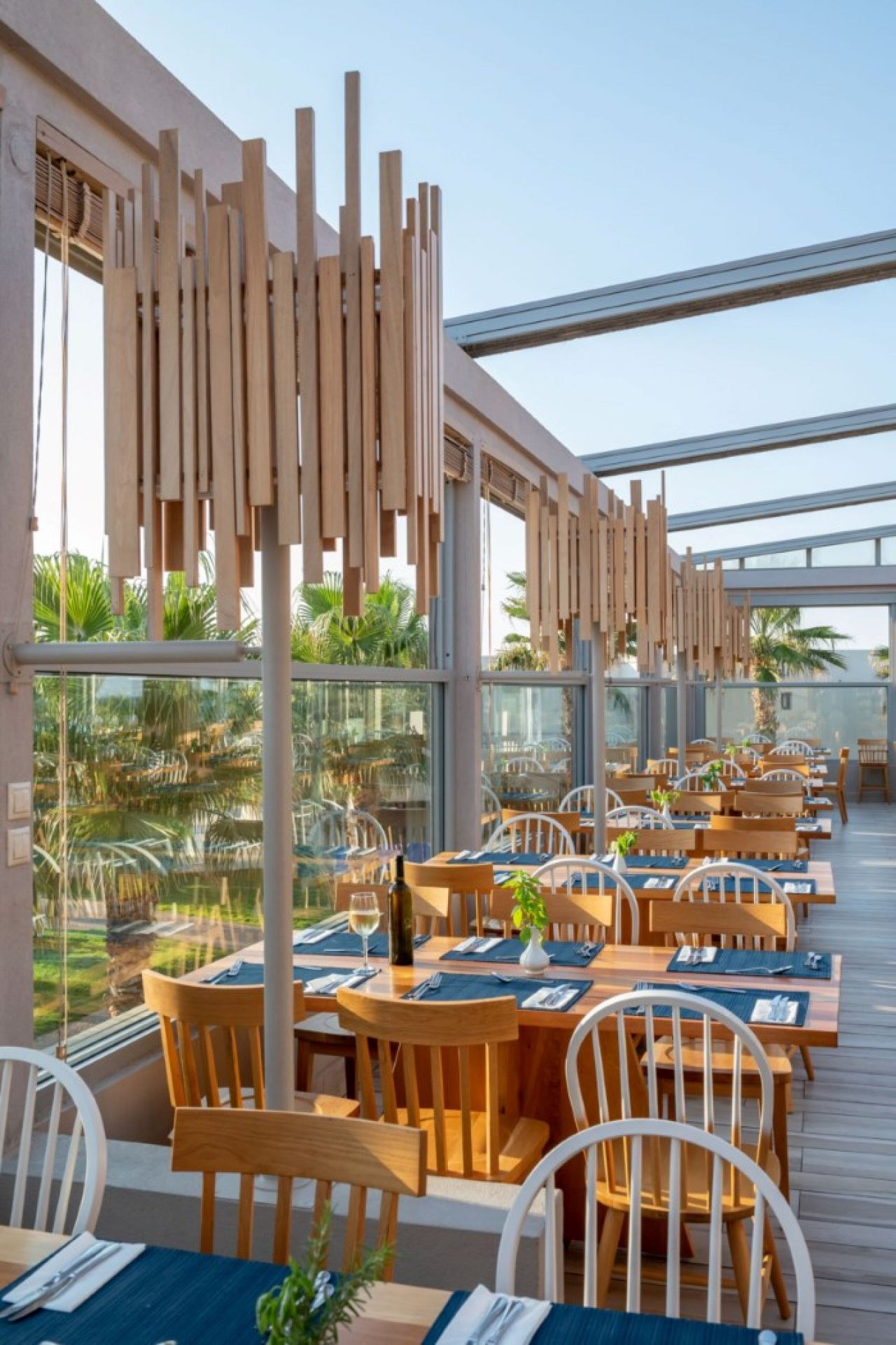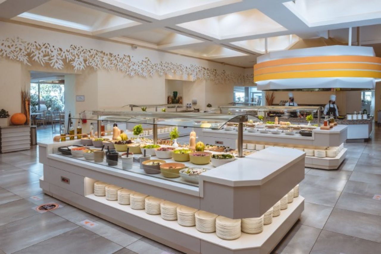 Ultra all inclusive ellátással foglalható. A központi étteremben hagyományos és nemzetközi finomságokat tartalmazó bőséges svédasztalos reggelivel és látványkonyhával várják a vendégeket. A fiatalabb vendégek számára gyermekmenüt is kínálnak. A Kalypso vendéglőben svédasztalos reggelit és à la carte fogásokat szolgálnak fel modern, mégis romantikus tengerparti környezetben. A szálláshely ázsiai étterméből panorámás kilátás nyílik a tengerre. A helyszínen 5 bár is működik.