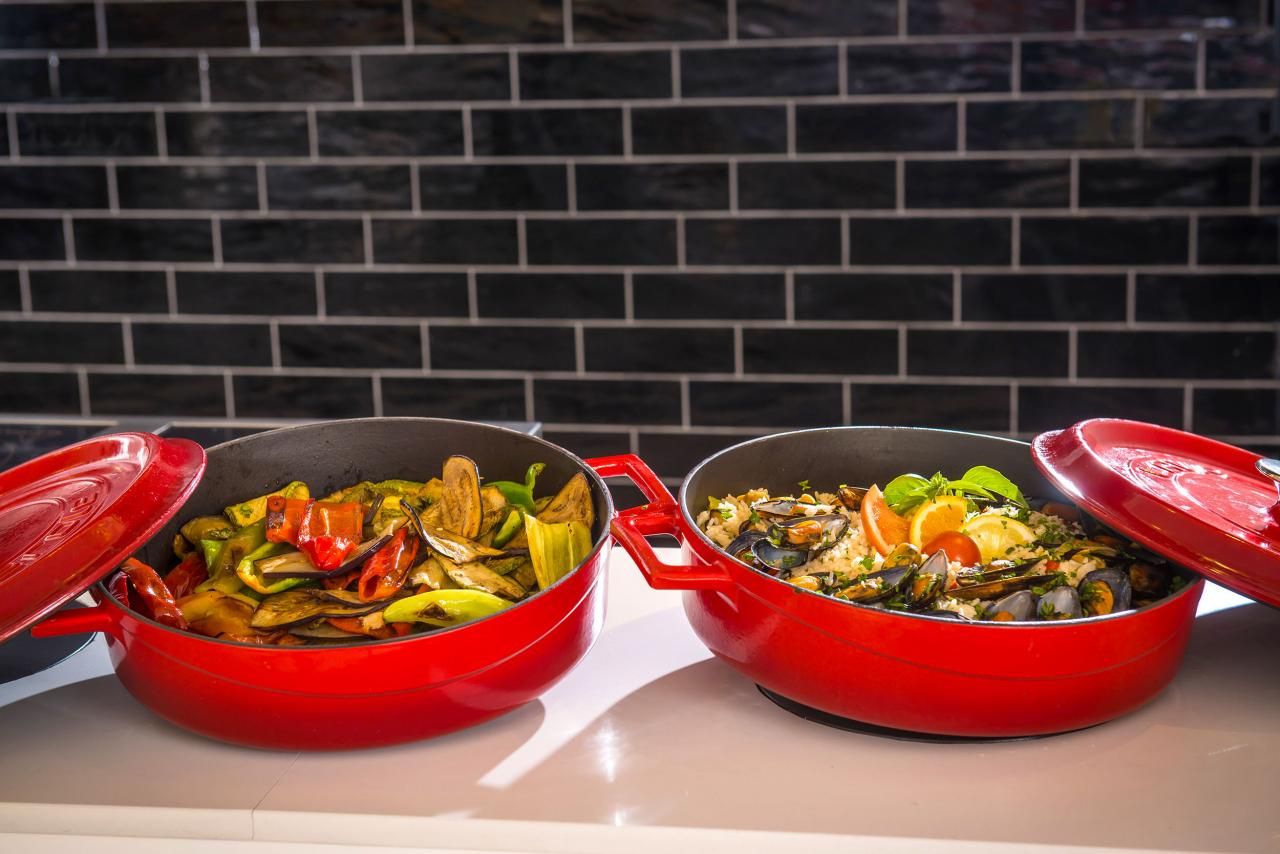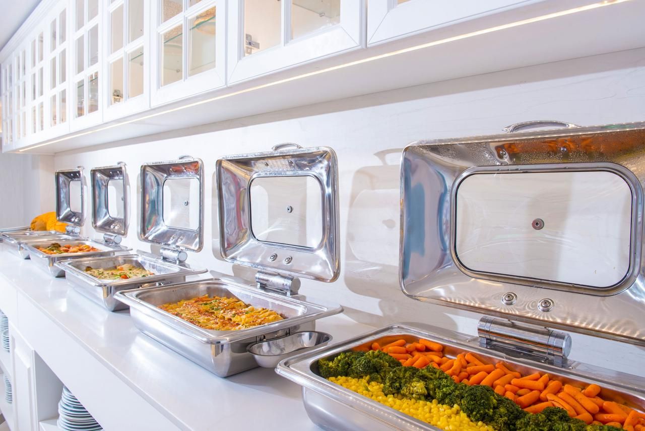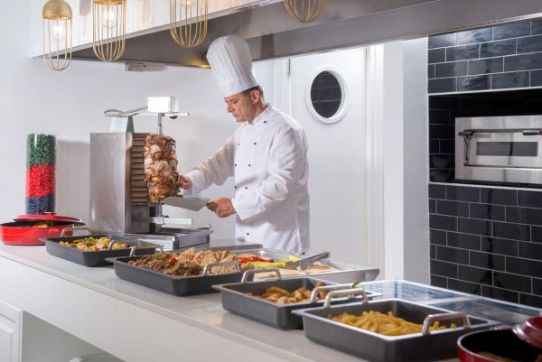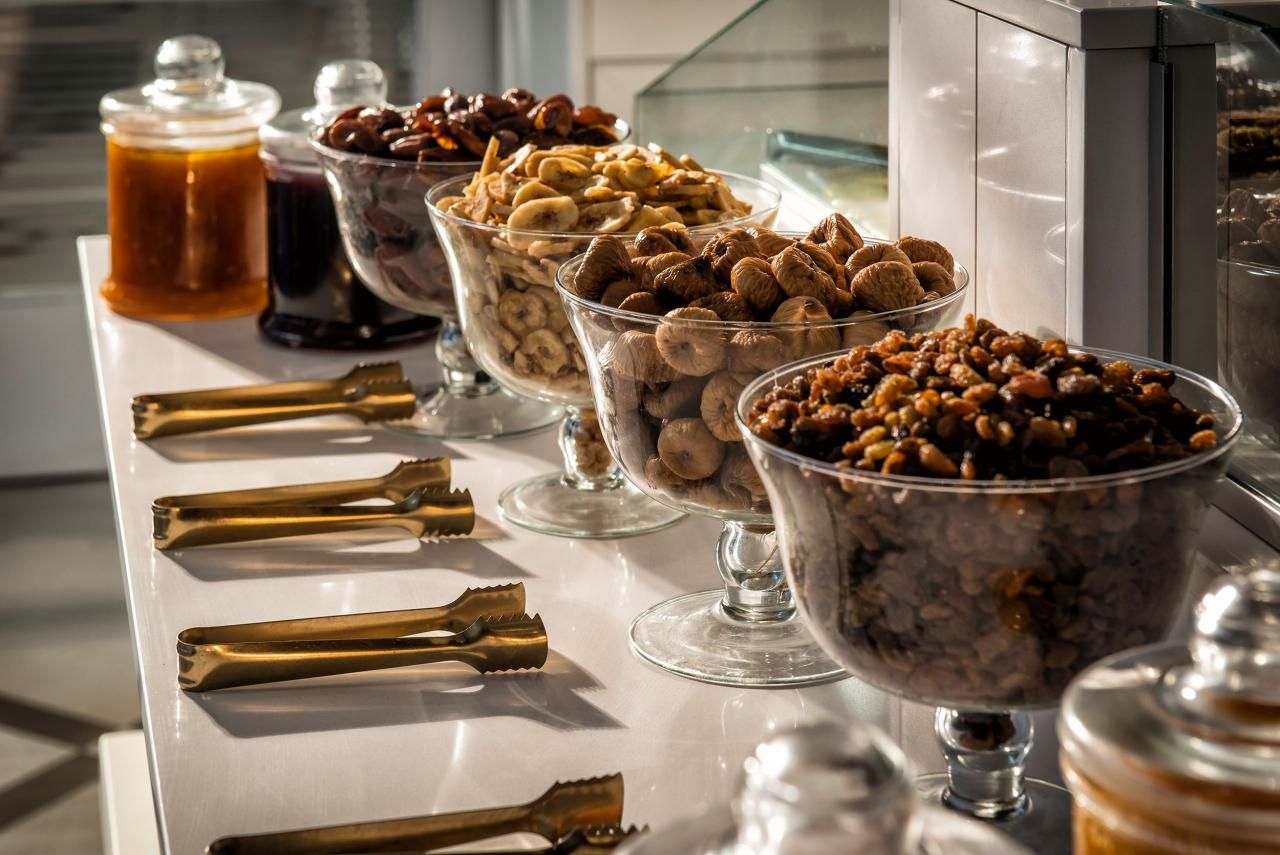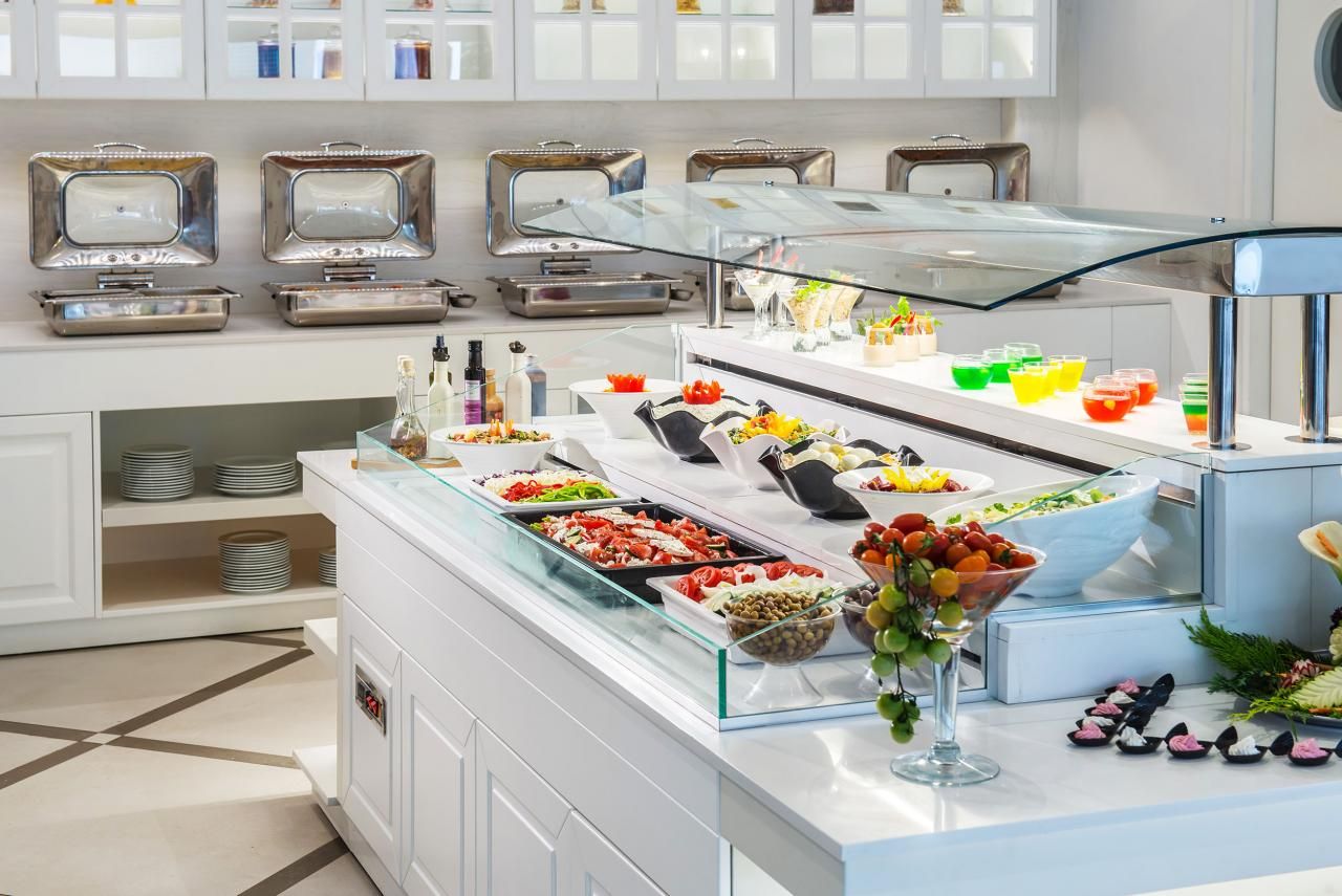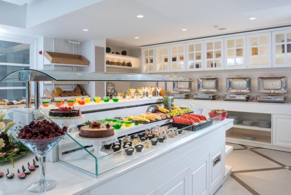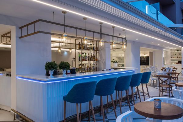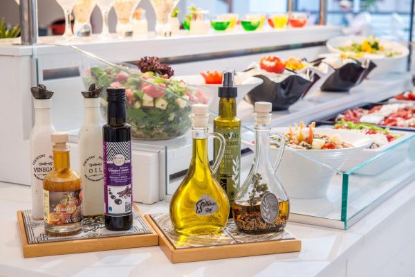 Reggelis és félpanziós ellátással (reggeli és vacsora italok nélkül) foglalható. A szálloda étterme görög és mediterrán konyhával várja vendégeit. A szálloda egy bárral is rendelkezik a medence mellett.