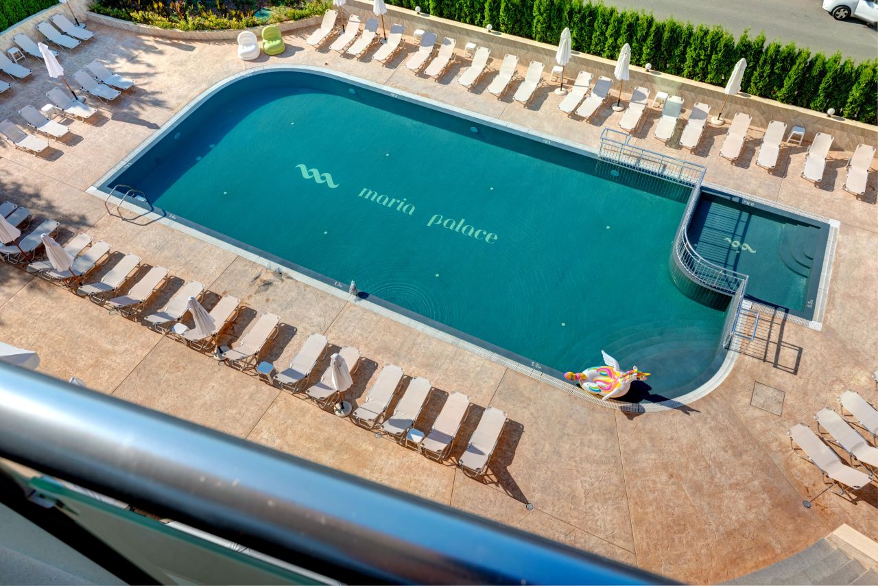 A Hotel Maria Palace 4* a Napospart legnyugodtabb és legcsendesebb részén található. A szálloda kb. 650 méterre található az üdülőhely strandjától. A szálloda közelében számtalan egyéb szórakozási és vásárlási lehetőség is van. transzfer - reptéri kikötő (térítés ellenében)