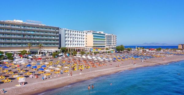 A szálloda Rodosz belvárosától kb. 200 méterre, a kikötőtől kb. 500 méterre és a rodoszi repülőtértől kb. 14 km-re fekszik. A homokos-kavicsos tengerparttól csupán egy út választja el. Buszmegálló az épülettel szemben található.