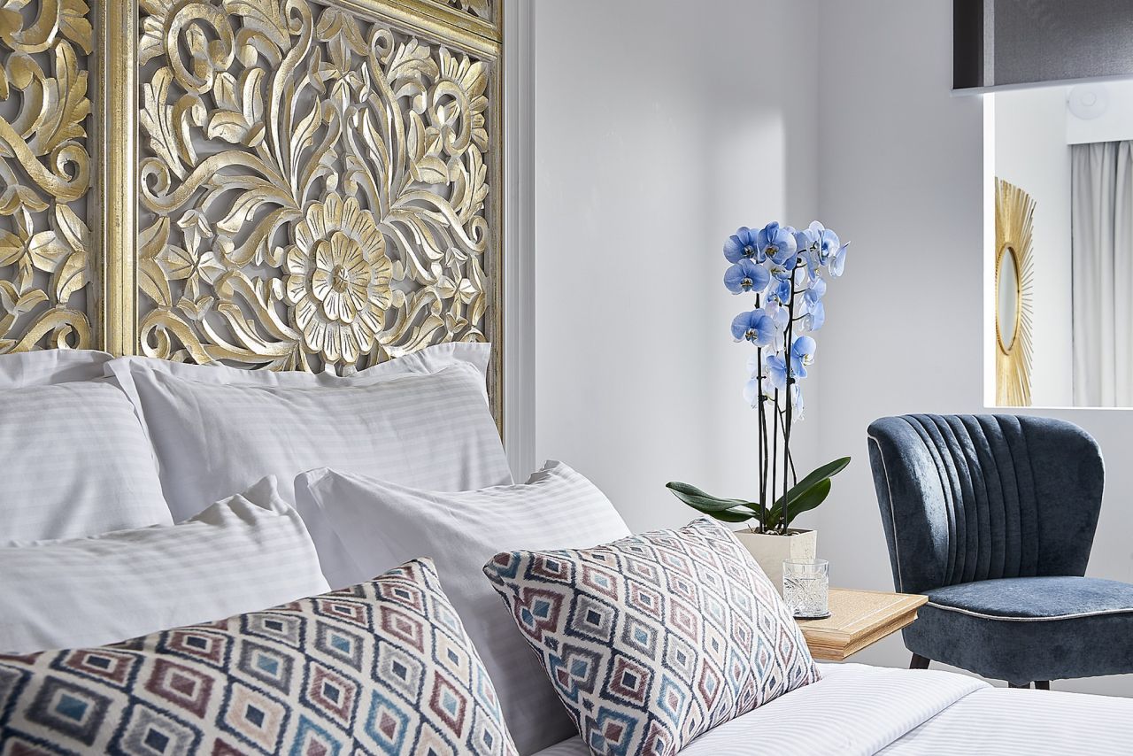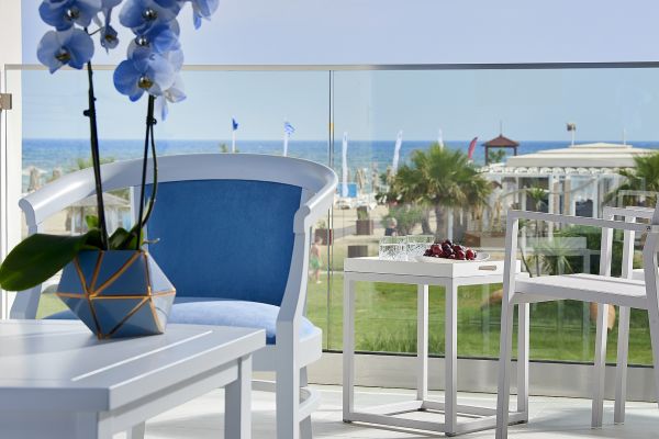 Deluxe Double Room Garden View / Side Sea View: A deluxe szobák elsősorban a főépületben és a szomszédos szárnyakban találhatók. 2 felnőtt és egy gyermek vagy 3 felnőtt kényelmes elhelyezésére alkalmasak. Kertre vagy oldalról a tengerre néző kilátással rendelkeznek.