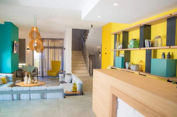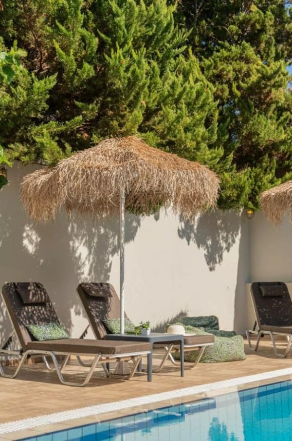 A modern étterem görög és európai ételeket szolgál fel brunch, ebéd, vacsora, délutáni tea és koktélok formájában. A kültéri étkezőteraszokról gyönyörű kilátás nyílik a tájra.