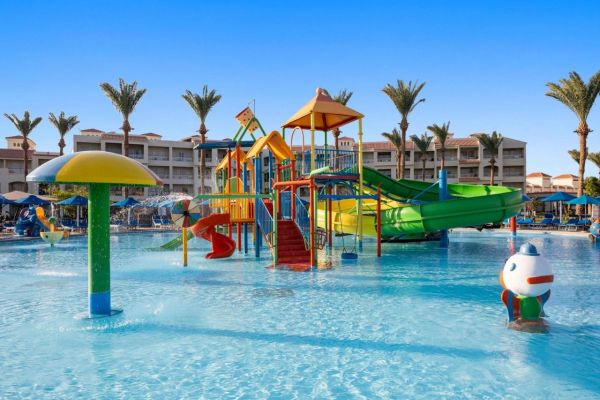 A nagy kiterjedésű luxusszálloda több, alacsony épületből áll, Hurghada déli részénél, a hosszú, homokos strandnál helyezkedik el. A komplexumot uralja a hatalmas medence, mely egy kis folyóba torkollik, ezen lehet csónakázni vagy vízibiciklizni a strandhoz. A repülőtér 15 km-re, Hurghada központja 20 km-re, a legközelebbi vásárlási lehetőségek a közvetlen közelben találhatók.Felszerelés