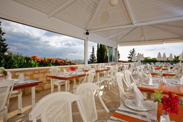 A szálloda félpanziós és all inclusive ellátással foglalható. A vendégek a Poseidon medencebárban fogyaszthatnak italokat, az Apollon snack bárban pedig könnyű ételeket fogyaszthatnak. A Dionyssos étteremben svédasztalos reggelit, ebédet és vacsorát szolgálnak fel, míg a Dionyssos étteremben rendszeresen szerveznek élő főző- és tematikus esteket.