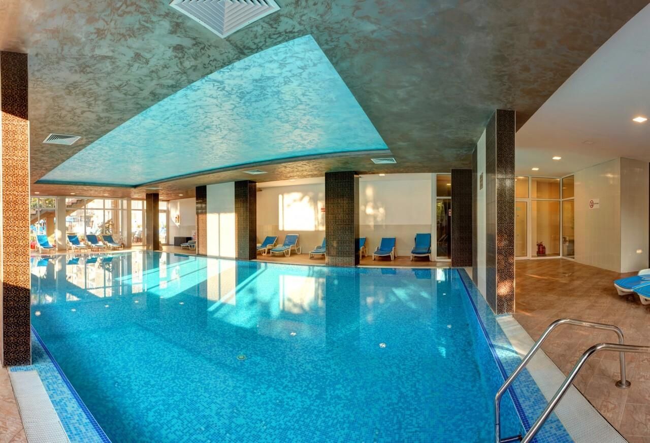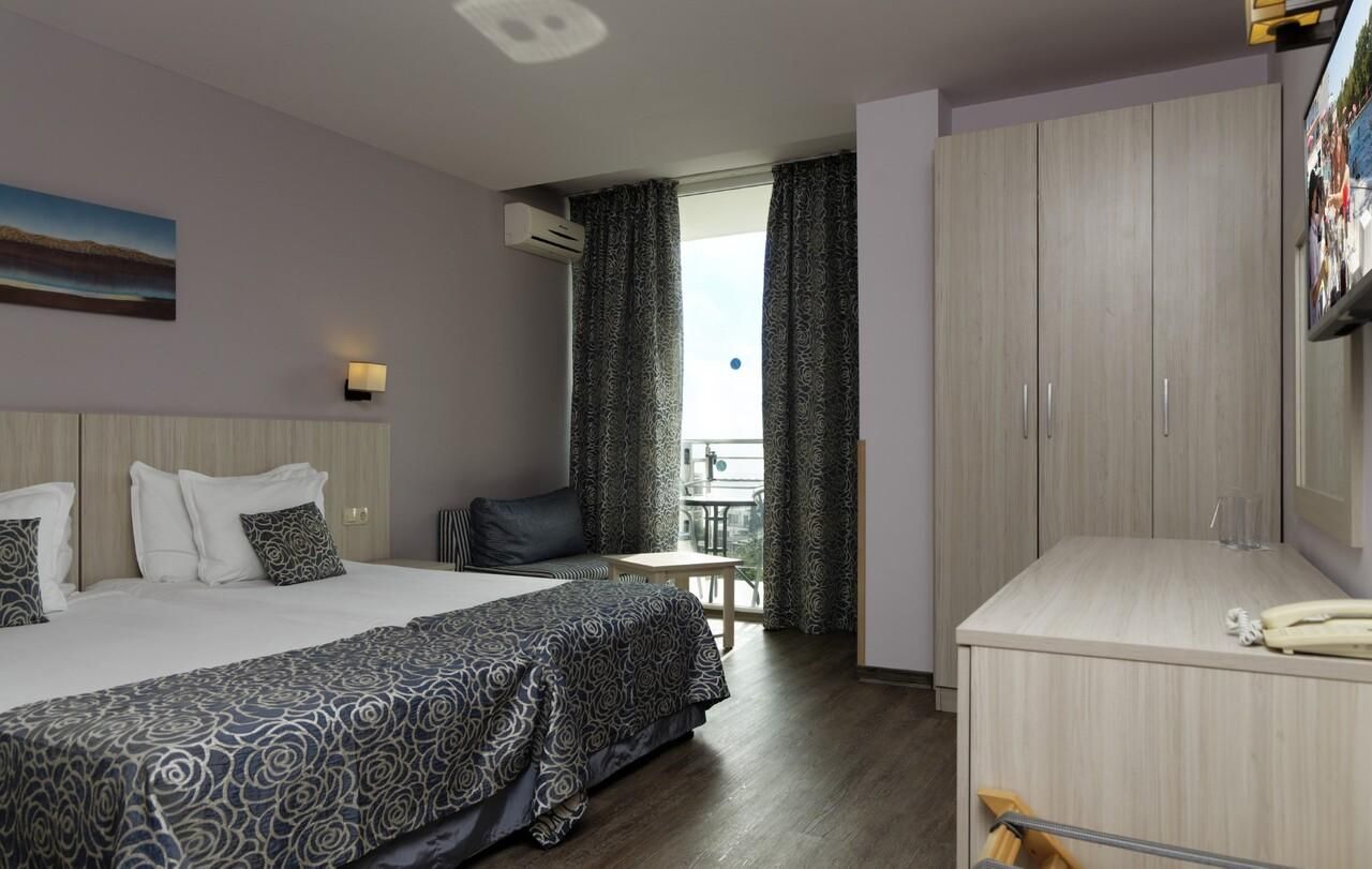 A teljesen légkondicionált, 6 emeletes épületben kellemes, napos terasz és három medencéből álló kaskád található, ahol ingyenes napágyak és napernyők állnak rendelkezésre. Az épületben 4 lift és 1 panorámalift működik. A hotel kényelmes kétágyas szobákat kínál. Az elegáns előcsarnokban recepció, széfek, csomagtároló, lobby bár napos terasszal, biliárd, gyerekszoba és kényelmes pihenőhely található. A hotel fő étterme büfé rendszerű, nagy terasszal, továbbá snack bár és medencebár is működik. Minden nyilvános területen és a szobákban ingyenes Wi-Fi áll rendelkezésre. 1 szoba mozgássérült vendégek számára alkalmas.