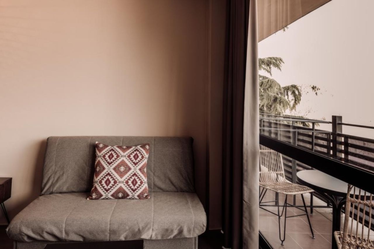 3 Studio Parkra néző: kb. 40 m2; két különálló ágy 100/200, kihúzható kanapé, bútorozott erkély, egyéni klíma, szárító, műholdas TV, telefon, minibár (fizetős), széf (ingyenes), internet-hozzáférés (Wi-Fi, ingyenes), fürdőszoba káddal vagy zuhanyzóval, bidé, hajszárító, telefon, törölközők.