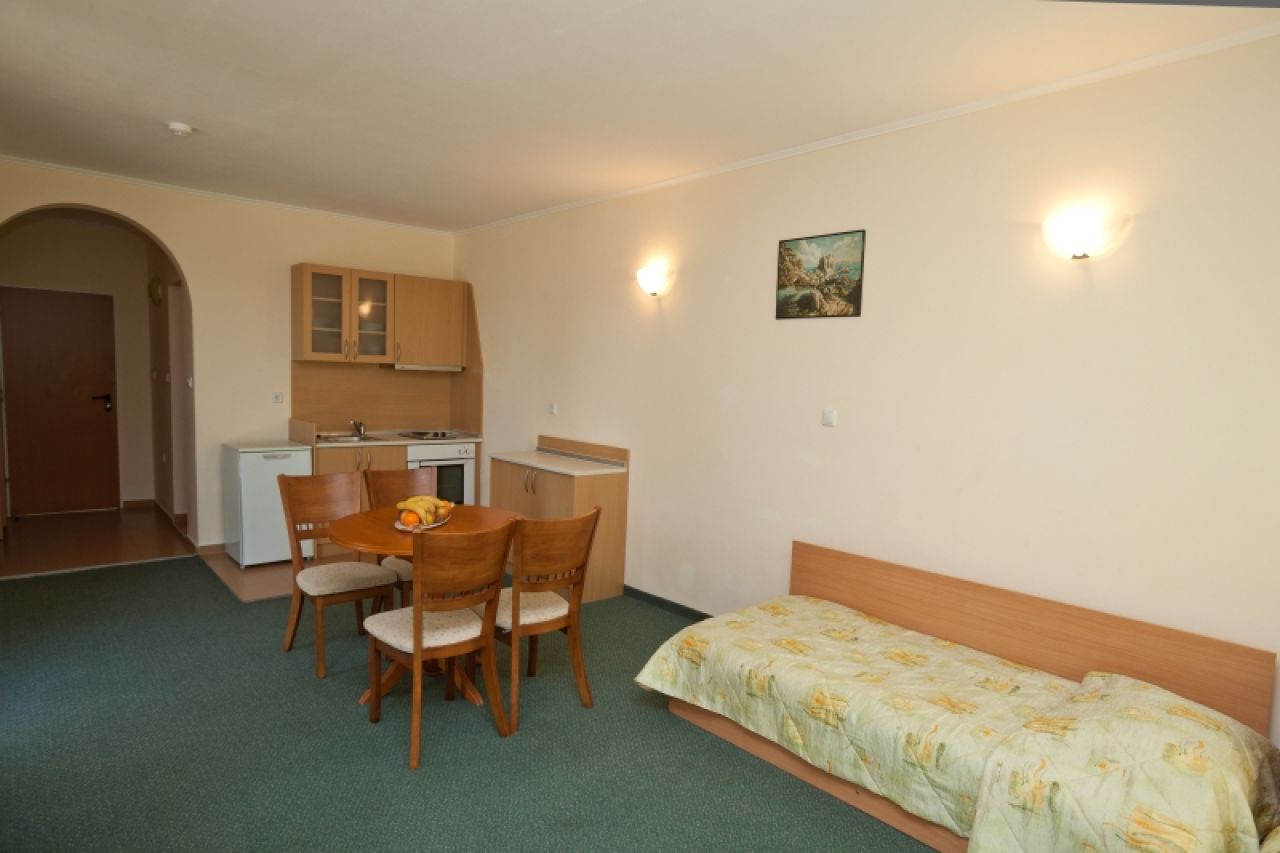 Az apartmanok mindegyike a kényelem és a komfort jegyében van berendezve. Minden szobához zuhanyzós fürdőszoba és WC tartozik. A szobák további felszereltségéhez puha bútorok, kétszemélyes kanapéágy, amely két gyermek számára is jó alvást biztosíthat, műholdas TV, mini hűtőszekrény, egyénileg szabályozható fűtő- és légkondicionáló egységek, valamint nagy terasz tartozik, ahonnan kilátás nyílik a tengerre és a medencére.