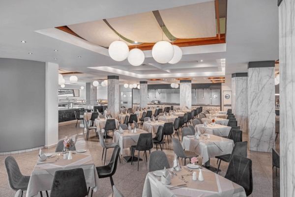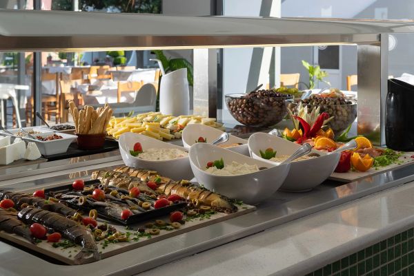 All inclusive ellátással foglalható, mely tartalmazza a reggelit, ebédet, vacsorát, illetve helyi alkoholos- és alkoholmentes italokat. Két tematikus éttermében (tradicionális görög ízek, halételek) a vendégek tartózkodásuk alatt egyszer ingyenesen fogyaszthatnak, melyhez előzetes foglalás szükséges. Napközben snackételeket, kávét, teát, süteményeket, fagylaltot kínálnak. A szálloda bárjaiban alkoholos italok fogyasztása 12:00 és 23:00 óra között lehetséges. Az import italok, valamint az ír- és arabica kávék térítés ellenében kérhetőek.